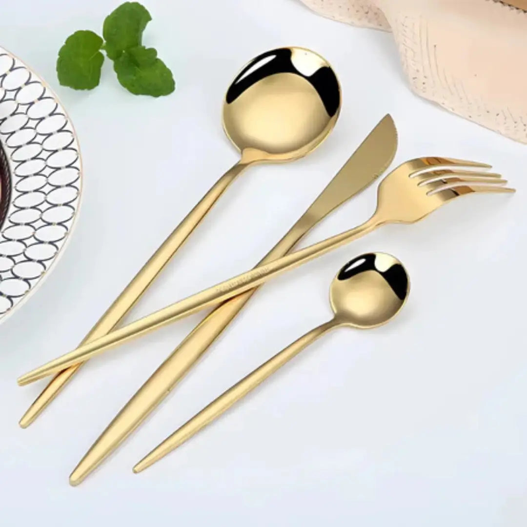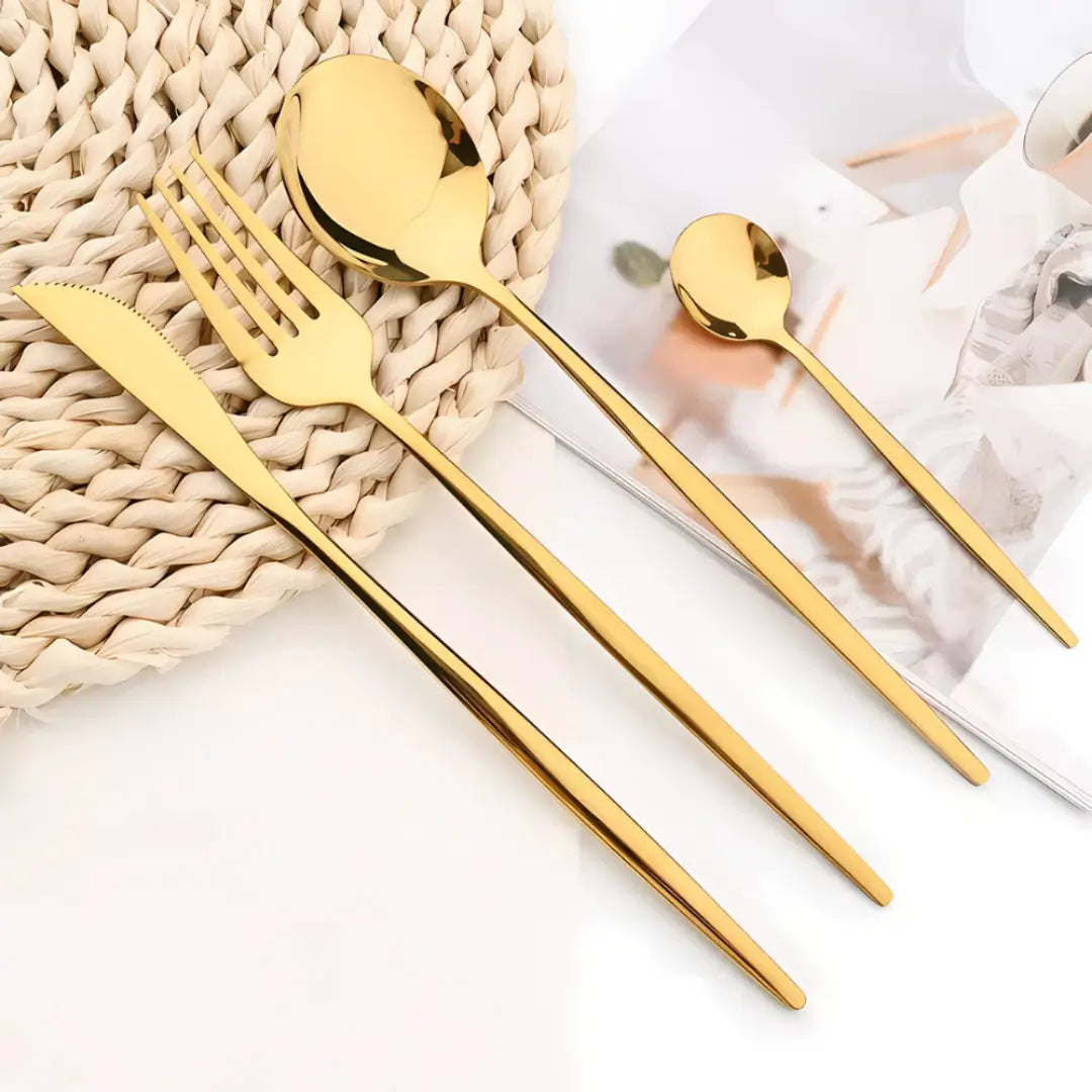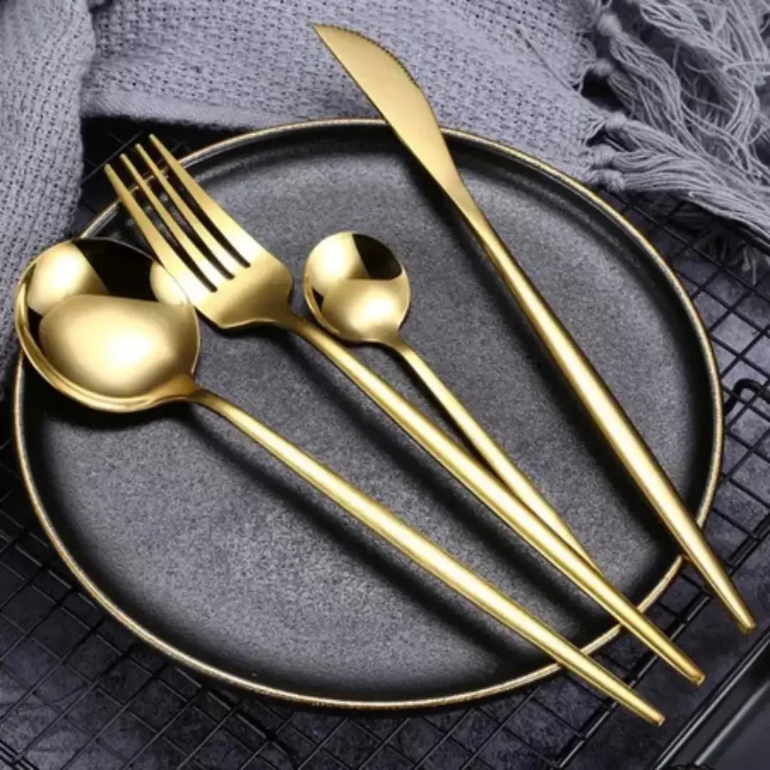 Jogo de Talheres Dourado 24 peças de Aço Inoxidável Astrea