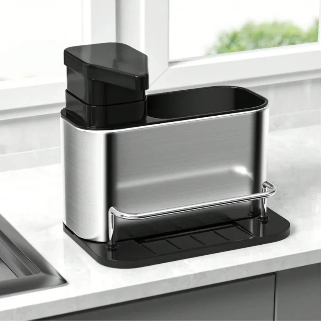 O DispensiMax 3 em 1 é a solução Exclusiva e perfeita para manter a pia da sua cozinha impecavelmente organizada. Diga adeus à bagunça e aproveite um ambiente mais limpo e funcional.